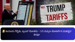 ಟ್ರಂಪ್ ಅವರ ಜಾಗತಿಕ ಟ್ಯಾರಿಫ್ ನೀತಿ ಅಮೆರಿಕ ಮಾತ್ರವಲ್ಲದೆ ವಿಶ್ವದಾದ್ಯಂತ ದೊಡ್ಡ ಪರಿಣಾಮ ಬೀರಿತ್ತು. ಆದರೆ ಈಗ ಸುಪ್ರೀಂ ಕೋರ್ಟ್ ತೀರ್ಪು ಸ್ಪಷ್ಟ ಸಂದೇಶ ನೀಡಿದೆ – ಯಾರೂ ಕಾನೂನಿಗಿಂತ ಮೇಲು ಅಲ್ಲ.